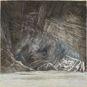 款識:二O 一一年六月畫。立霧溪峽壁。李義弘。