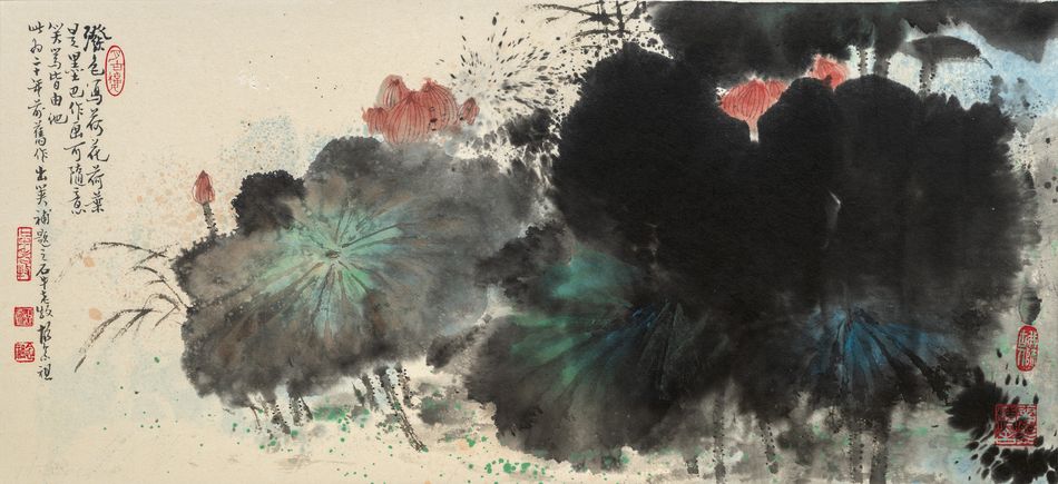 釋文:潑色寫荷花,荷葉是墨巴。作畫可隨意,笑罵皆由他。