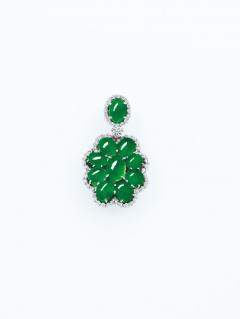 緬甸天然翡翠蛋面配鑽石吊墜
