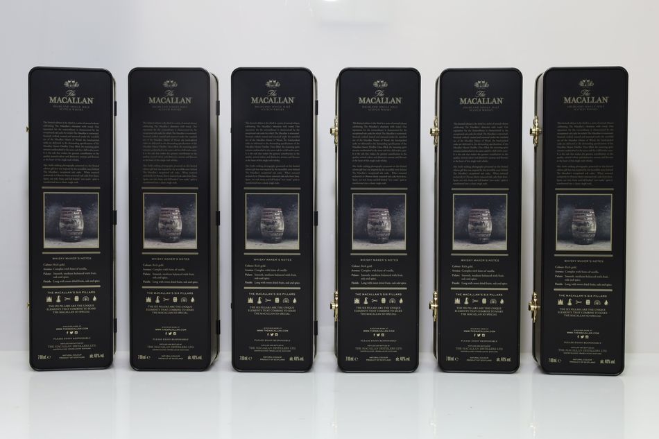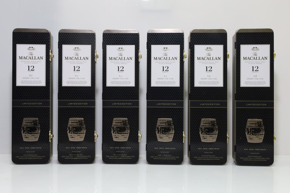 Matured In Hand-Picked Sherry Seasoned Oak Casks From Jerez, 6水位頸部, 1背標輕微髒污, 6鐵盒輕微凸起