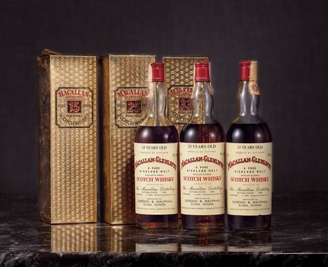 Macallan-Glenlivet 15 Years Old Pure Highland Malt Gordon & Macpahil/Macallan-Glenlivet 25 Years Old Pure Highland Malt Gordon & Macpahil/Macallan-Glenlivet 33 Years Old Pure Highland Malt Gordon & Macpahil
