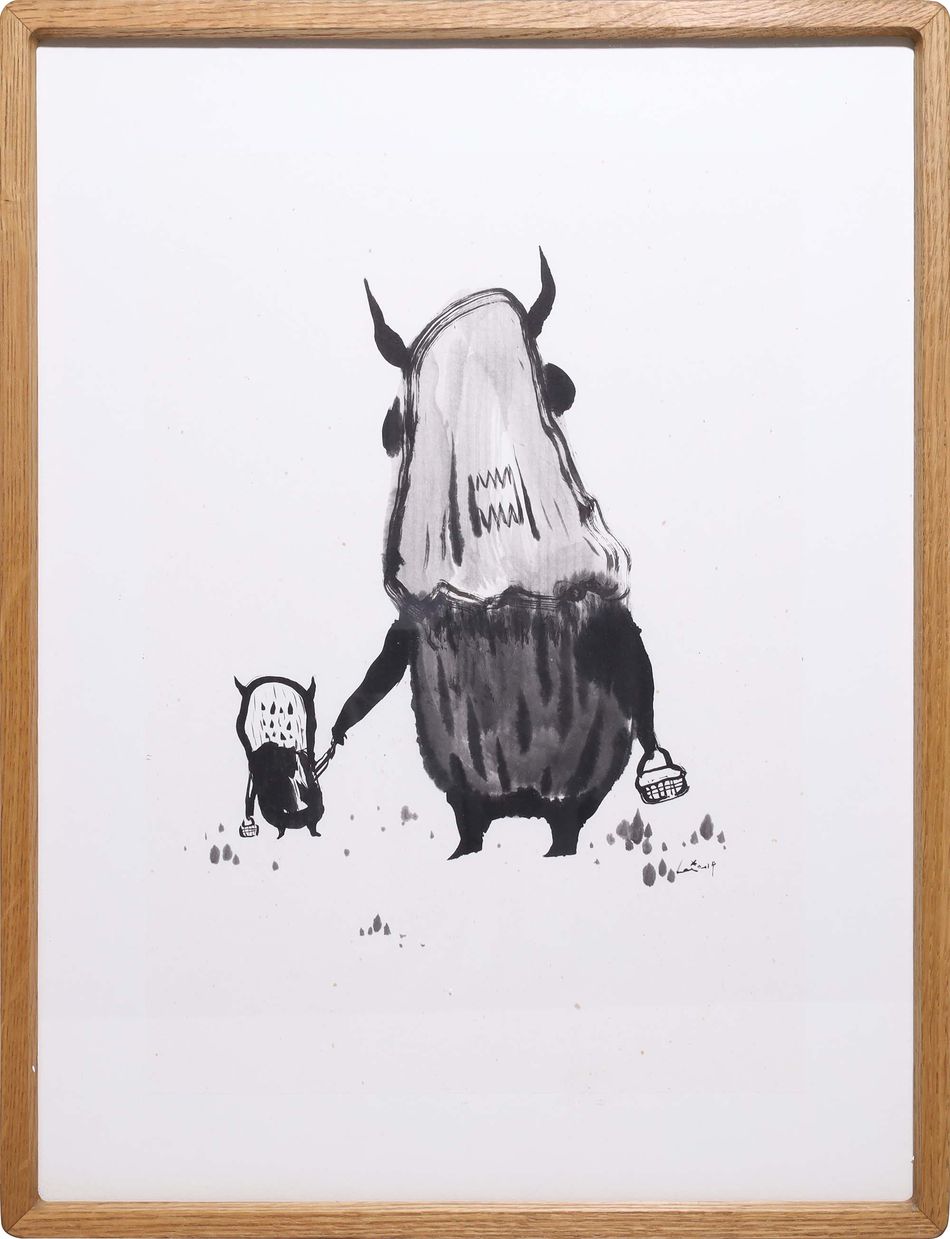 讀書時期的壓抑,成為藝術家速寫本上反覆出現的黑白怪獸形象,這些怪奇生物逐漸成為他創作的核心角色,不只是情緒的出口,也象徵著對「醜」、「怪」的重新詮釋與質疑,讓這些邊緣形象站上主流賽道,挑戰視覺美感的疆界,也打破既定的價值對立。