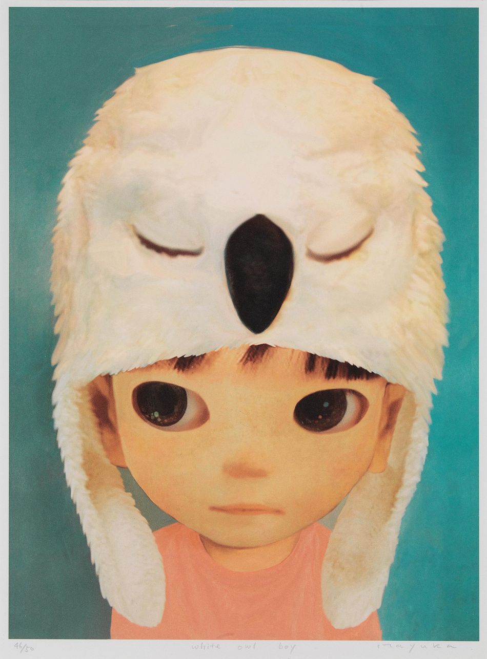 Signed lower Mayuka White Owl Boy and numbered 42/50