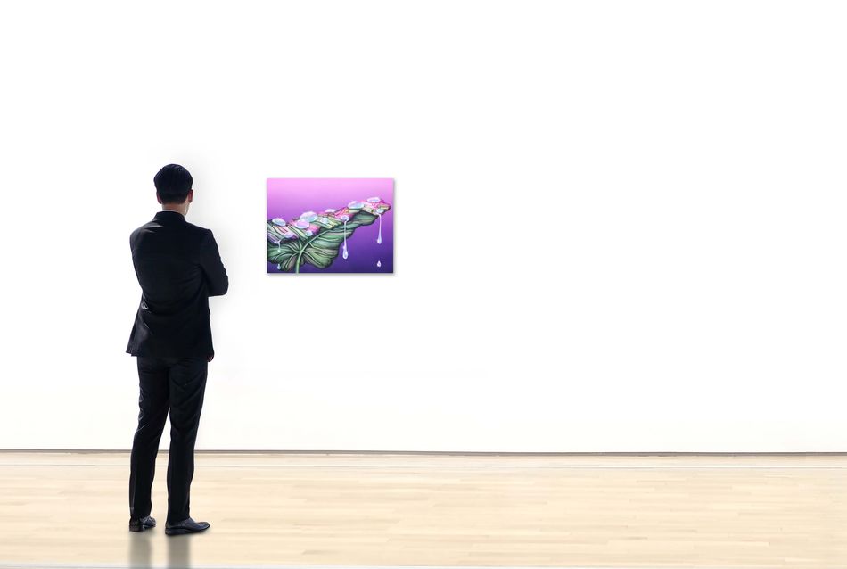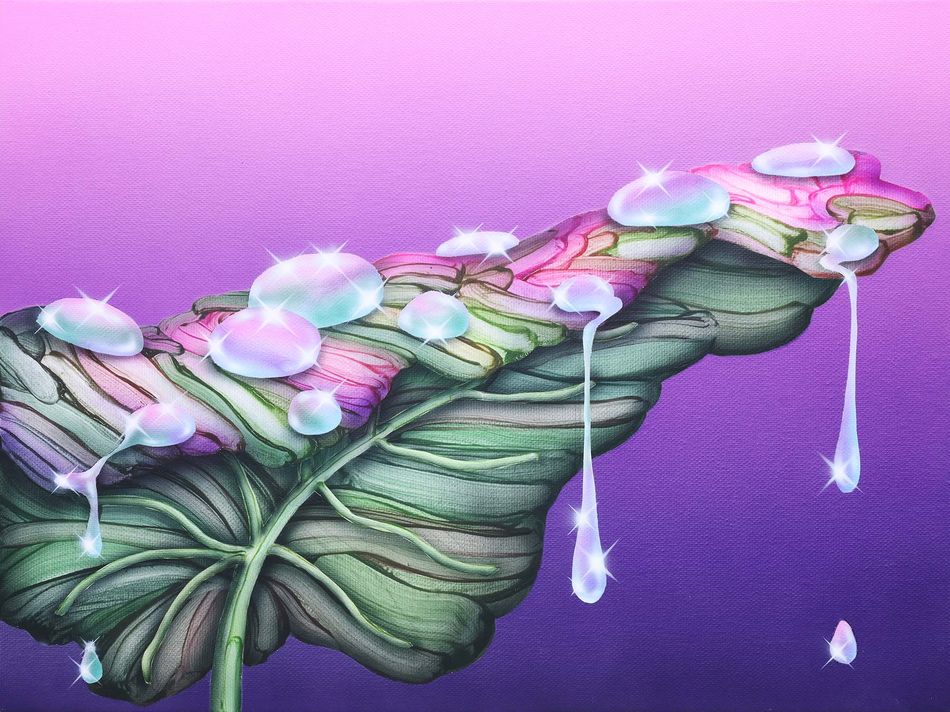台灣藝術家梁祐寧,1990生,畢業於法國布爾日國立高等藝術學院,目前生活工作於桃園。梁祐寧的創作常見以植物作為情感與記憶的寄託,象徵人與人之間的關係與內在連結。植物的生命週期、脆弱與變動,成為他與自我對話的重要途徑。藝術家在創作中結合光、空氣與水等自然元素,透過噴槍與質地的變化,營造出模糊、流動的視覺經驗。紅紫色源自植物燈的照射痕跡,逐漸演變為作品中階段性的象徵,筆觸的堆疊則記錄了身體與感知的節奏,將難以言喻的情緒與觀察,轉化為一場場視覺與感知交織的創作實踐。梁祐寧創作曾榮獲台新藝術獎第二十二屆第二季提名及藝術銀行多次典藏。