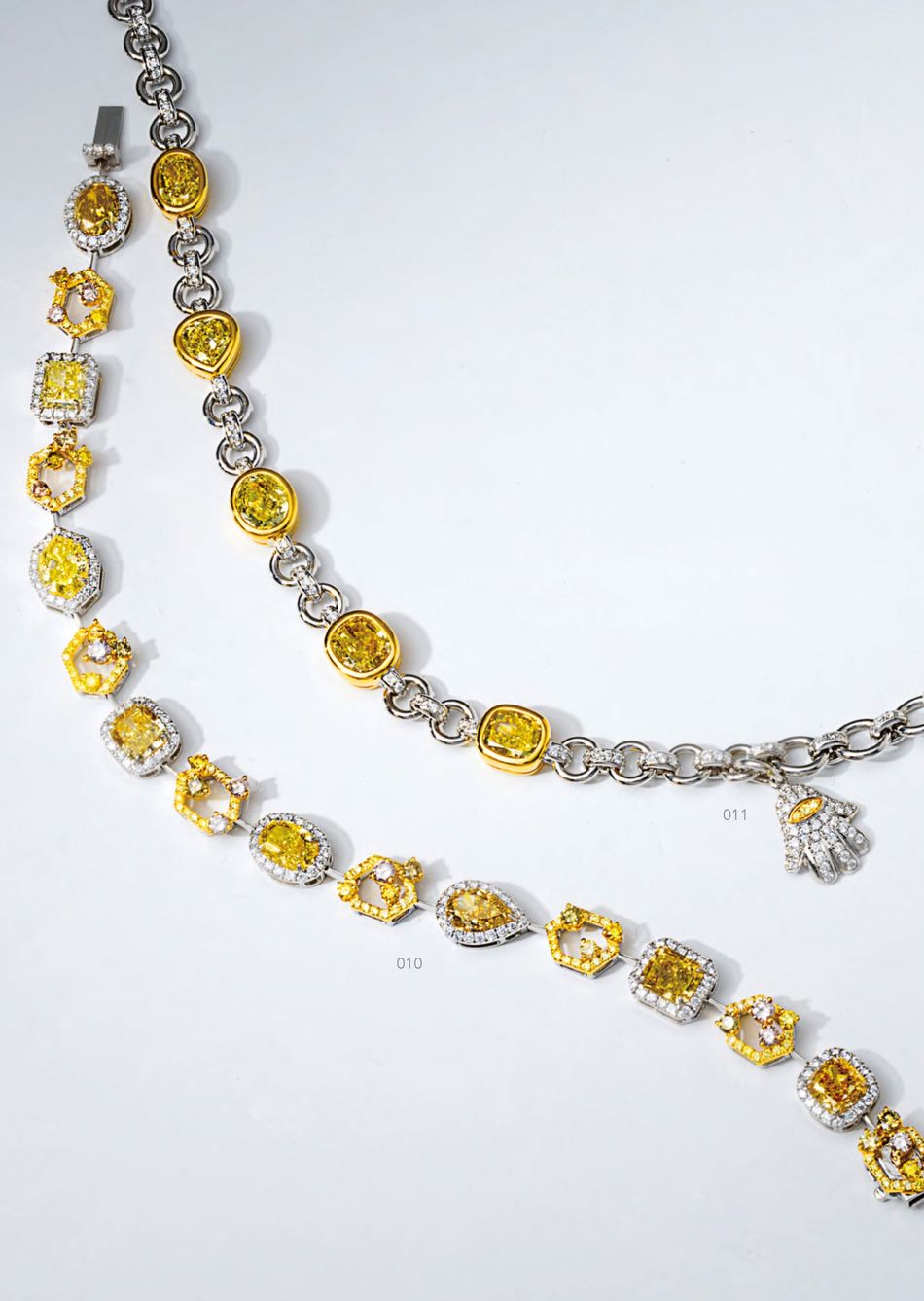 總重5.32克拉花式切割黃色鑽石配鑽石手鍊,附GIA證書