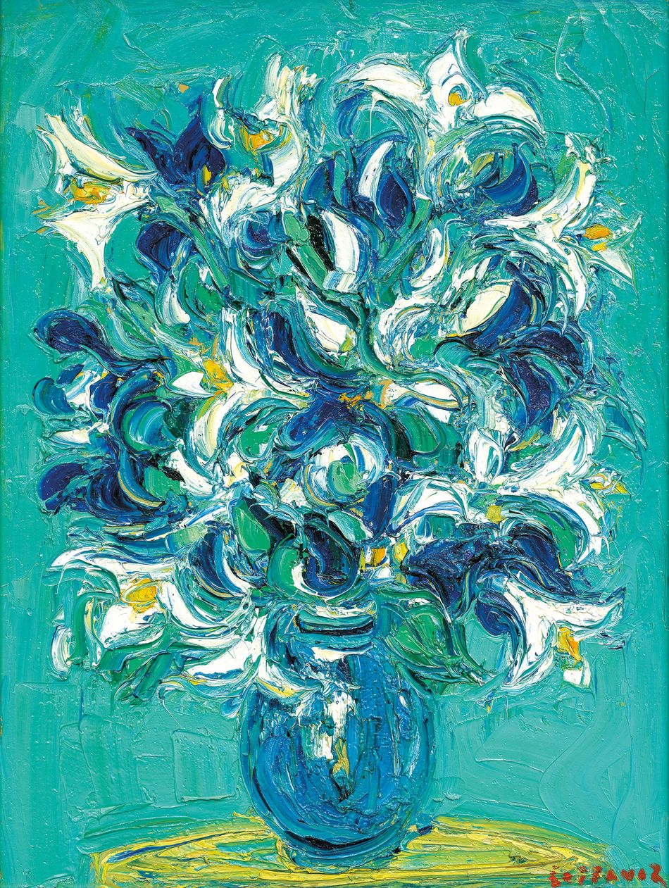 簽名題識背板: IRIS BLEUS et LYS cottavoz