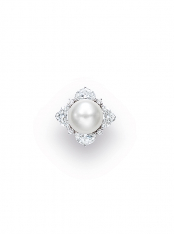 天然珍珠配鑽石戒指,附Gübelin證書,MICHAEL YOUSSOUFIAN