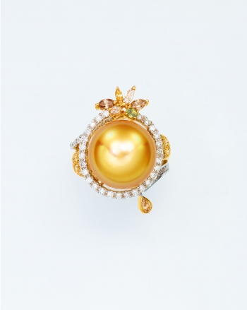 A GOLDEN SOUTH SEA CULTURED PEARL AND DIAMOND RING, BY DILYS'