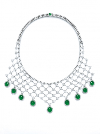 A JADEITE AND DIAMOND NECKLACE