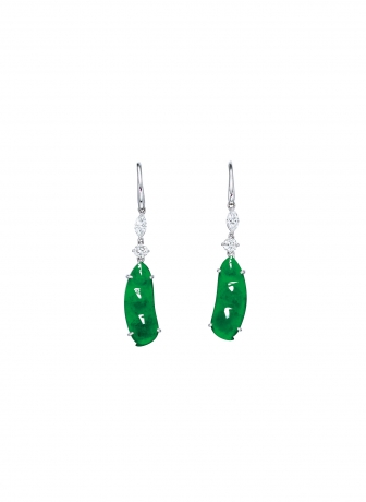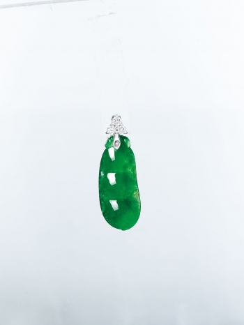 緬甸天然翡翠福豆配鑽石吊墜及耳墜套裝