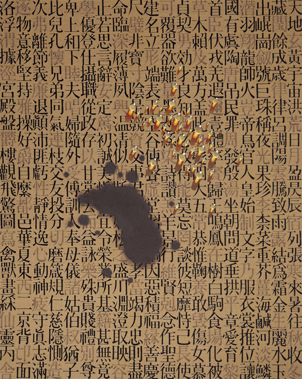 旅居法国的金昌烈,除了在韩国本土受到仰慕,亦为在欧美最具影响力的韩国艺术家之一,布满画布上的文字,如同儒家诗书地流传至今,精确的字型传递对传统思潮的绝对臣服,露珠似的水滴将自然因素注入画布空间,水滴将东方哲理的形象带出,亦代表哲学本身的清澈及鲜活特质。《回归》诚如标题所指,怀抱着虚心回到一切哲理的源头及初衷。