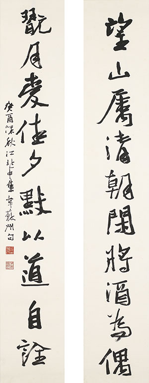 釋文:望山屬清朝閑將酒為偶,翫月慶佳夕默以道自詮。