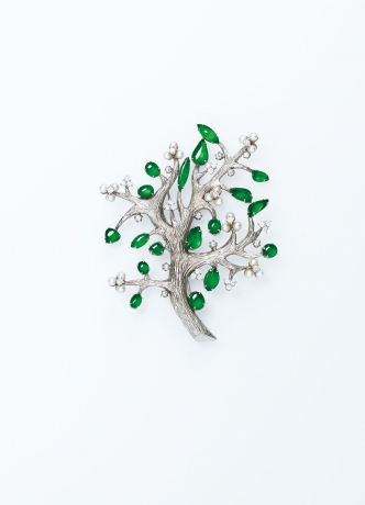 緬甸天然翡翠配鑽石及珍珠胸針