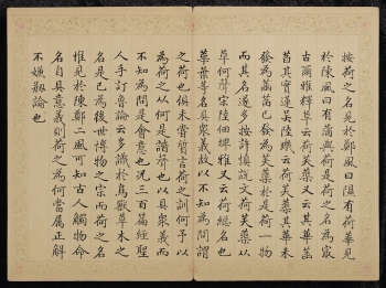 在传统文化里面,荷花是神圣净洁的象征。荷花出尘离染,清洁无瑕,人们常以荷花&出淤泥而不染,濯清涟而不妖&的高尚质量作为激励自己洁身自好的座右铭。乾隆帝每次驻跸承德避暑山庄,都会写荷花诗。“每岁驻跸山庄必有咏荷。”这本《御制山庄荷花诗》的第一首荷花诗作于乾隆六年(1741)。最后一首作于嘉庆二年(1797)。前后五十七年,共写了六十二首。