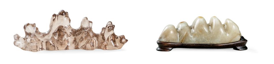 18/19世紀 水晶及青白玉山形筆擱(兩件一組)
