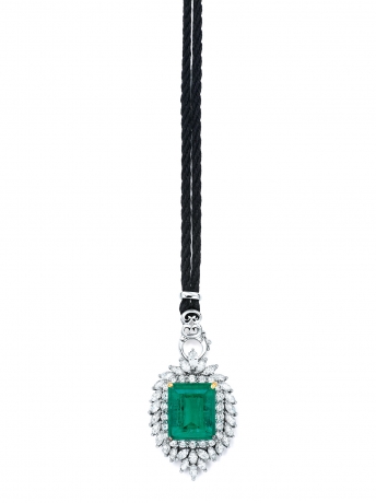 AN EMERALD AND DIAMOND PENDANT
