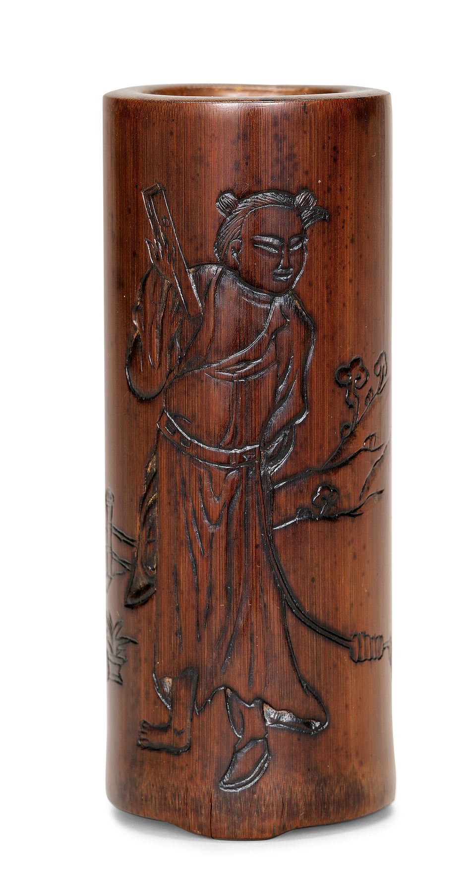 18世紀 竹雕藍采和詩文筆筒《芝山》款