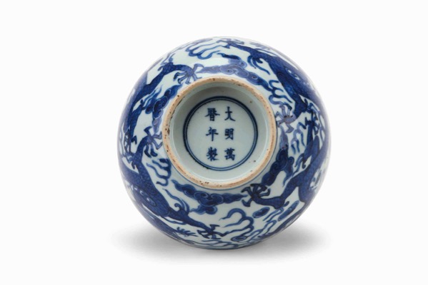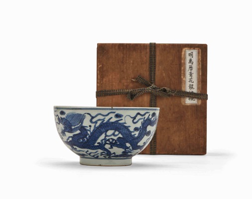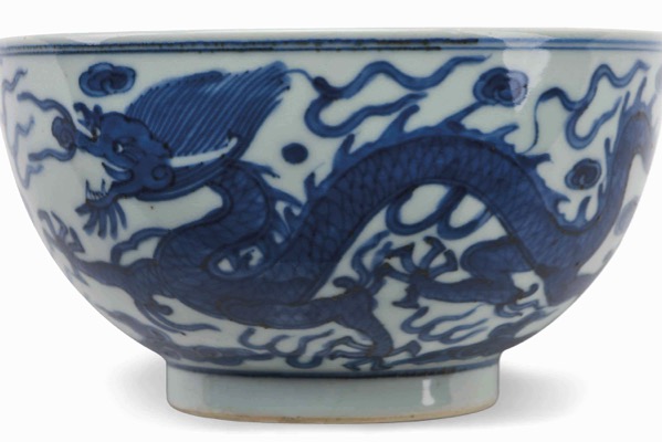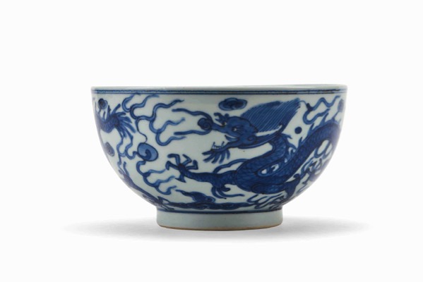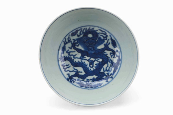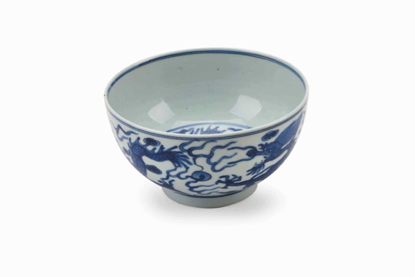 A LARGE BLUE AND WHITE 'DRAGON' BOWL