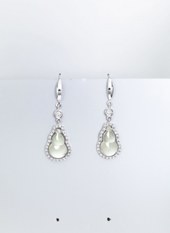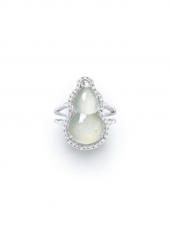 緬甸天然冰種翡翠葫蘆配鑽石吊墜,耳墜及戒指套裝