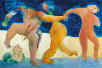 Signed on the reverse Alixe Fu in English twice, Fu Qingli in Chinese, titled Who Ate the Candy? in Chinese, inscribed 130 x 193.5 and dated 2008