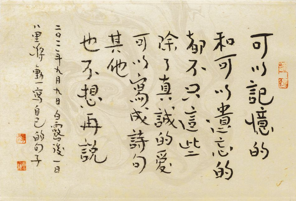 釋文:可以記憶的和可以遺忘的都不只這些。除了真誠的愛可以寫成詩句,其他也不想再說。