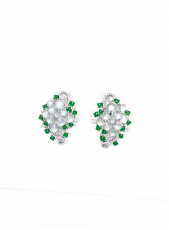 緬甸天然冰種翡翠配鑽石戒指及耳針套裝
