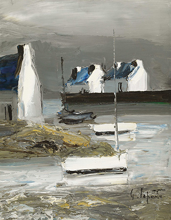 乔治.拉波德的创作多为海岸景色,以笔触及颜色表现了海水的流动感、波涛的多变;画中总是灰白的天空使观赏者更易聚焦于海平面上的光线折射及波动。乔治.拉波德在1926年12月17日生于法国蒙马特,学成国际贸易后曾担任海关代理人。1952年与妻子金妮.史密特结婚后前往勃艮第沙隆定居,1959年搬至勃艮第吉夫里,拉波德的画中景色多为吉夫里村景。在1958年获得法国艺术家沙龙的巴斯蒂昂.勒帕奖项,其后在欧洲各地展出皆广受好评。拉波德于2000年12月7日逝世于巴黎。