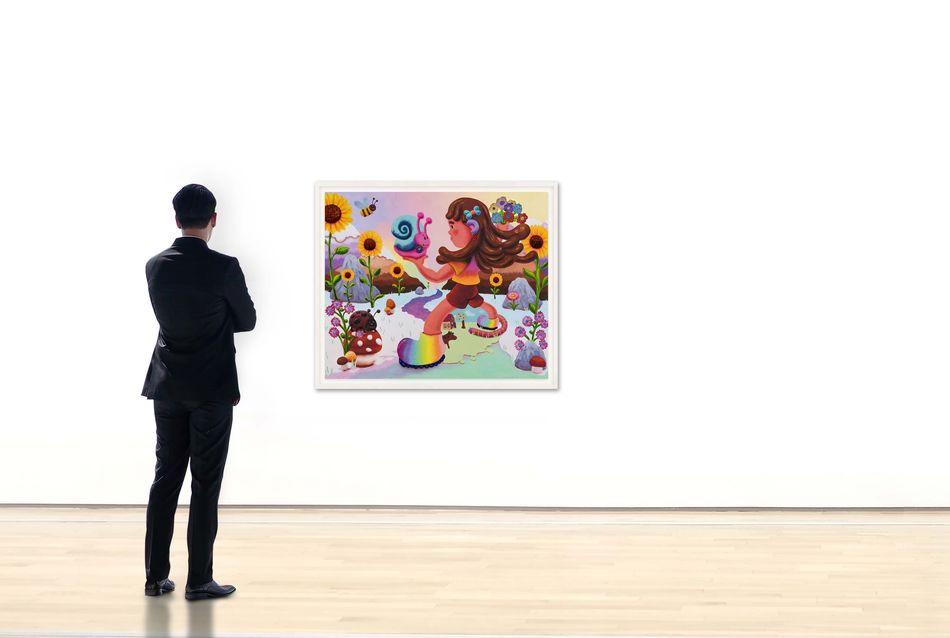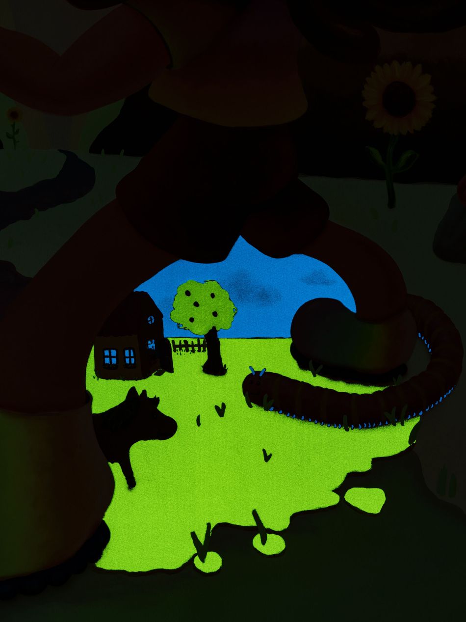 Archival pigment print with 26 hand-pulled silkscreen layers, including glow-in-the-dark inks, high gloss varnishes and glitter layters on Somerset Enhanced Radiant White Satin 505gsm paper