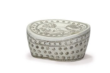 AN EXTREMELY RARE DINGYAO WHITE GLAZED PILLOW CARVED WITH LION PATTERN Song Dynasty (AD960-1279)