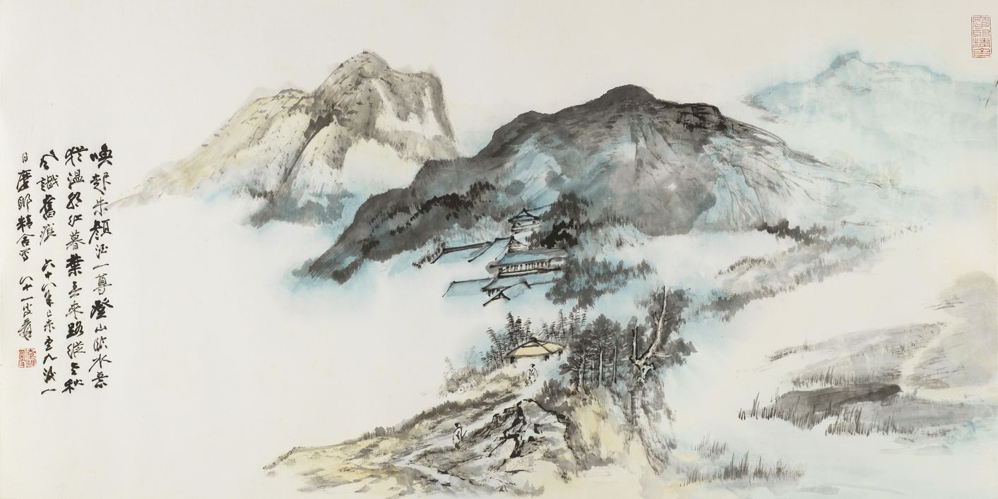張大千《登山臨水圖》1979 水墨 設色 紙本 鏡框 66.5 x 134 cm