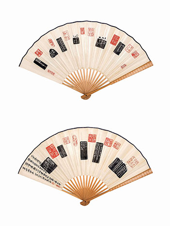 陳宏勉集1990至1995年篆刻印拓:「春日遲遲」、「鏡花水月」、「剎那芳華」、「自淨其心」、「敬事」、「人生幾何」、「喪我」、「馬西馬西」。「執子之手與子偕老」、「不以兵強天下」、「日月同光」、「務修其本」、「以意為止」、「來來去去」、「無何有之鄉」。拓印扇如同一本特殊的印譜。