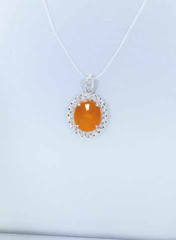 緬甸天然翡翠蛋面配鑽石吊墜,耳墜及戒指套裝