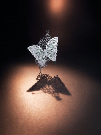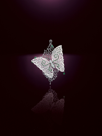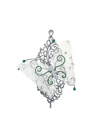A SUITE OF COLORLESS JADEITE, DIAMOND AND TSAVORITE GARNET PLAqUE JEWELRY, BY AMMIE KANG