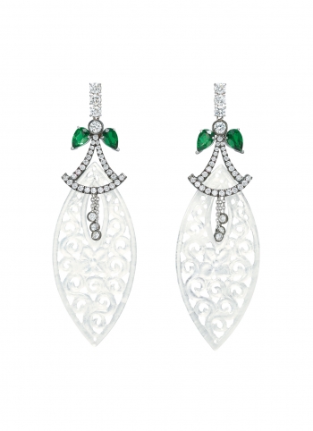 緬甸天然冰種翡翠配鑽石胸針及耳墜套裝,AMMIE KANG