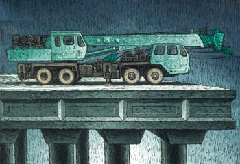 Signed on the reverse Lu Hsien-ming and titled Taipei Landscape III, dated 1995 all in Chinese
