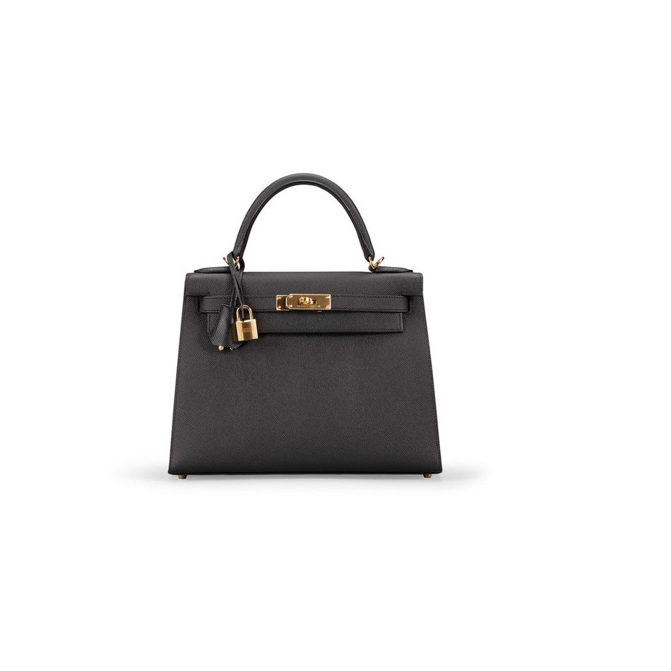 A NOIR EPSOM LEATHER SELLIER KELLY 25 WITH GOLD HARDWARE