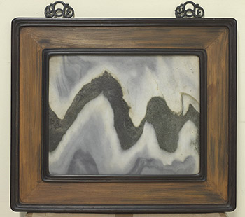 AN INLAID MARBLE-STONE NANMU PANEL Qing Dynasty (AD 1636-1912)