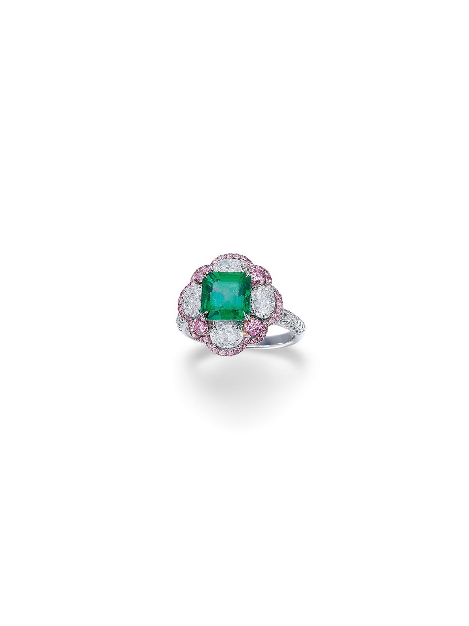 2.18克拉哥倫比亞祖母綠配粉紅色鑽石戒指 MUZO礦區,無浸油,附SSEF證書