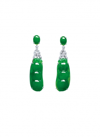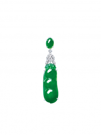 緬甸天然翡翠福豆配鑽石吊墜及耳墜套裝