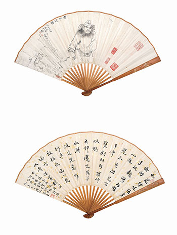 鑑藏印:陽朔黃氏半畝榕湖齋供養、成如容易卻艱辛、非官非民亦儒亦俠、黃天才供養老馗百扇之一、黃天才藏扇、老爹扇緣