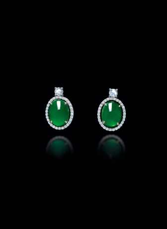 A PAIR OF JADEITE AND DIAMOND EARRINGS