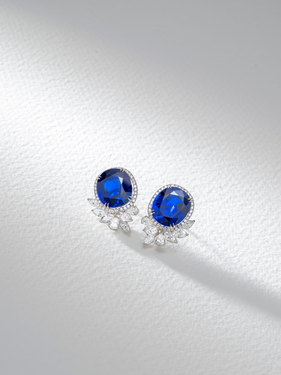 10.50克拉及10.03克拉橢圓形緬甸藍寶石配鑽石耳環,未經加熱,附SSEF證書