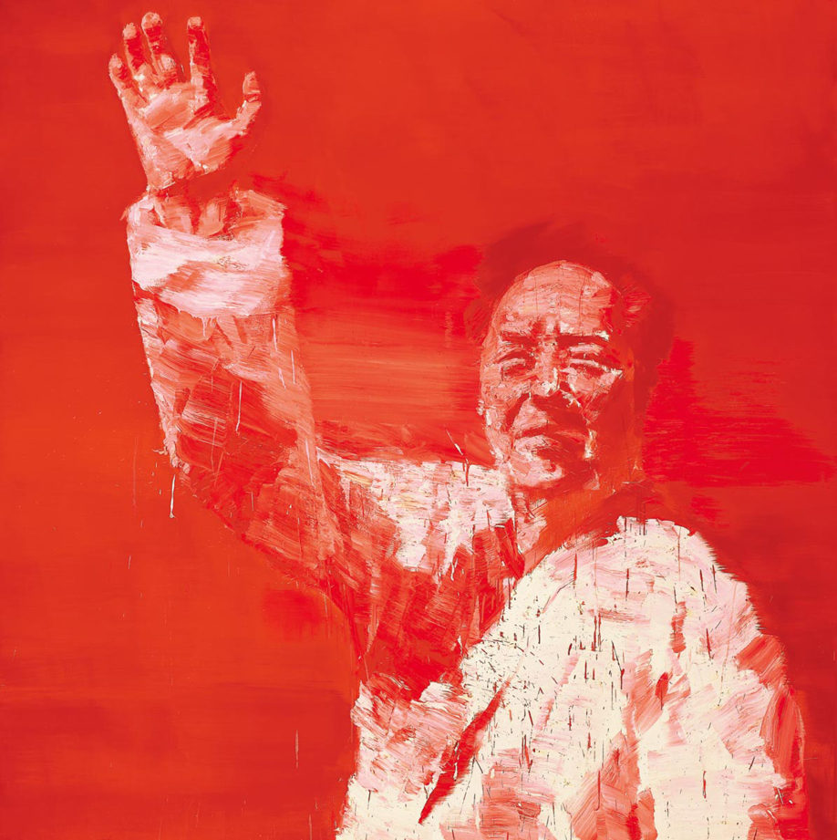 The lot of "Mao, Chinese Vermilion #5" is the series of "Chinese Vermilion". Yan Pei-Ming selected the most classic color with national character, Vermilion, to express a historical collective symbol. Yan Pei-Ming once recalled in an interview about the origin of red Mao Tse-tung, "At the age of 15 or 16, I was asked to do murals for schools and factories. I suggested portraits of Mao in red, and nobody could refuse. ... Red for good news, black for bad news." (Eric Colliard, "Conversation avec Yan Pei-Ming", in the catalogue Yan Pei- Ming, Dijon, Mecen'art, 1987). This series of works are huge portraits of Mao Zedong and some of them are head portraits of Mao Zedong. "Mao. Chinese Vermilion #5" is a rare piece with a half-length of Mao as composition. The portrait showed here was derived from a well-known historic photo taken in 1956 - Mao Zedong was waving after he swan across the Yangtze River. Mao dressed in robes waved to the public, displaying his amiability to the people, and at the same time, showing the strong will and physique of the great man. However, in the works of the artist, the classic image of Mao Zedong appears fuzzy and remote. With tousled hair and loosen clothing, he had no difference with an extraordinary people and the halo of great helmsman had faded. The historical glory has changed with the times, showing different kinds of visage.