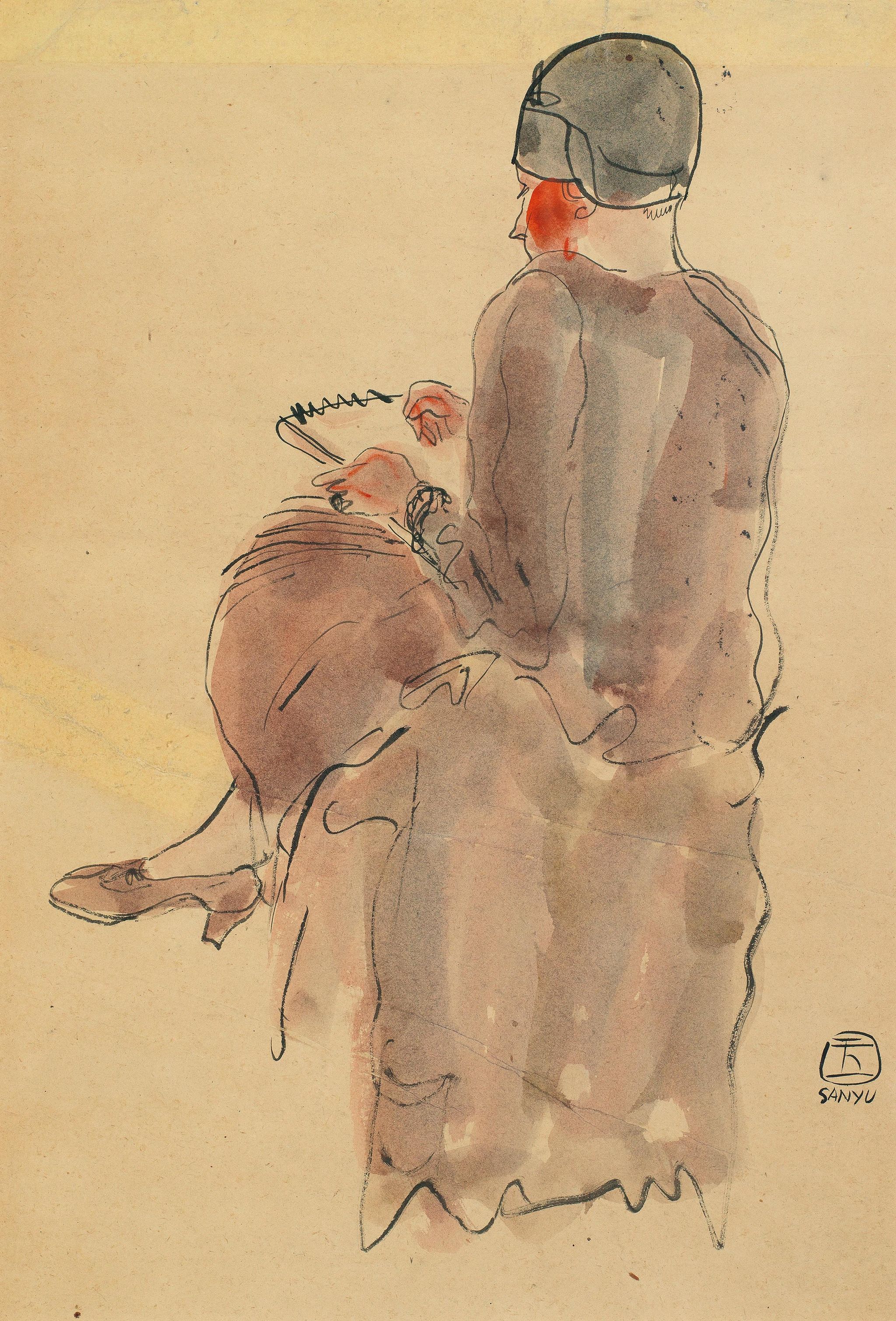 SANYU (CHANG Yu), Writing Lady, Watercolor on paper, 41 x 27 cm