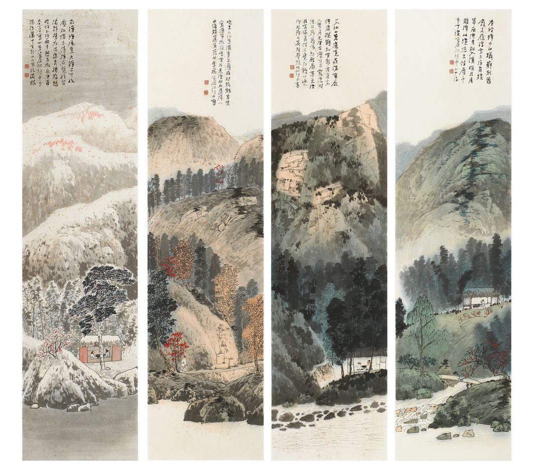 江兆申《四季山水》1993 水墨 设色 纸本 镜框 138 x 34.5 cm(每件)