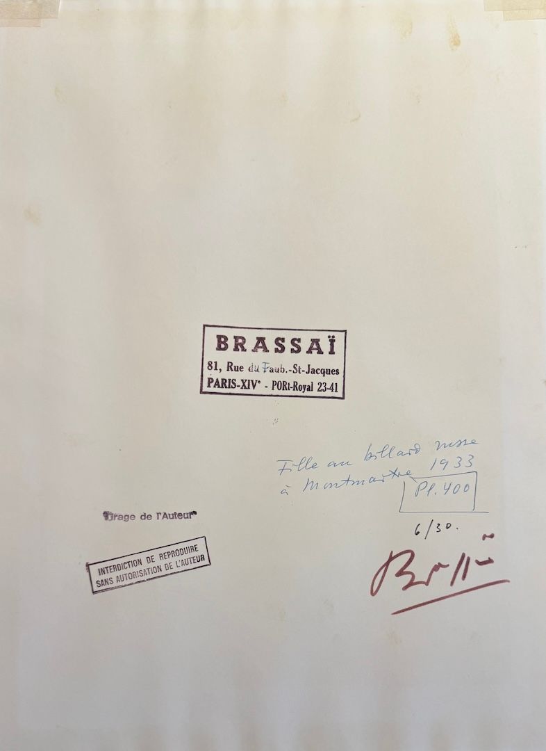 Brassaï曾在匈牙利美術學院學習雕塑和繪畫,並於 1924 年移居巴黎,起初以記者身分維生,踏遍巴黎大小角落,拍攝了一系列巴黎夜景,包含各種五光十色、燈紅酒綠的巴黎夜生活、不夜城街頭巷尾的冷冽淒清等各種景象,成為法國當時重量級攝影師之一。