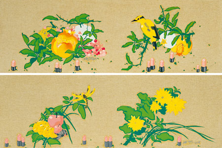 石榴和鳥;蜻蜓(一對)