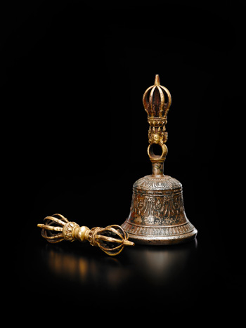 類似器:西藏博物館藏有一組金剛鈴與金剛杵,風格與本組拍品雷同,詳見:一西主編,《海外回流西藏文物精粹》,北京:文物出版社,2012年,頁174。