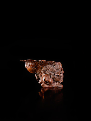 A CARVED BAMBOO-ROOT LIBATION CUP QING DYNASTY