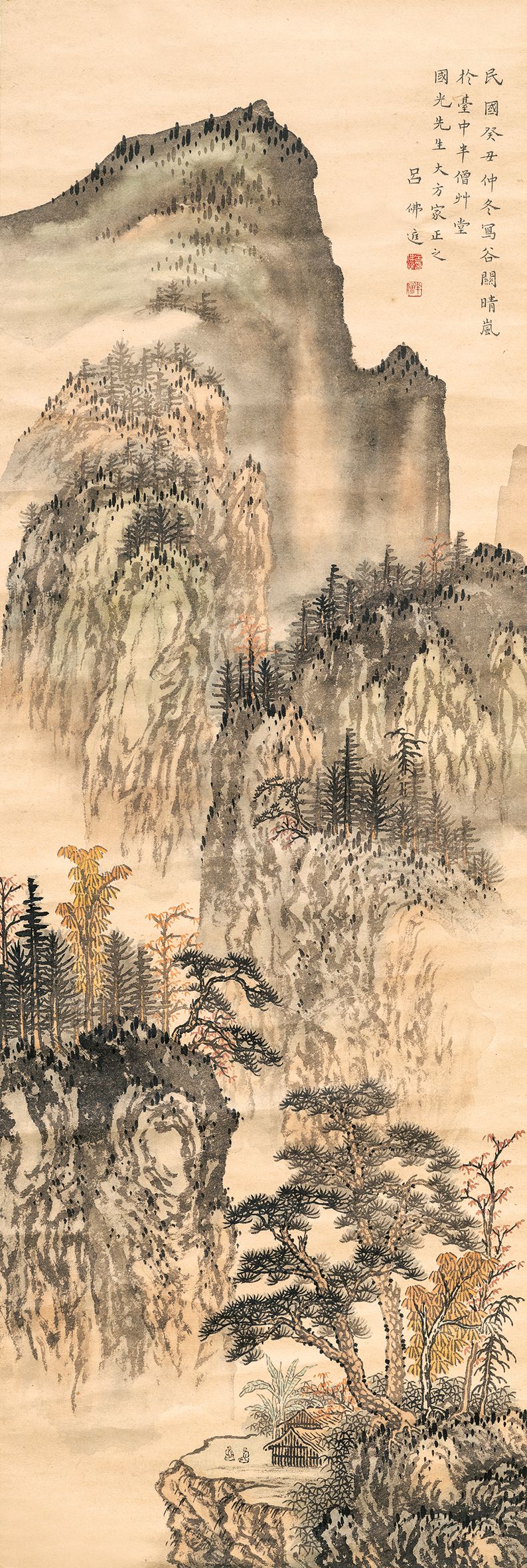 款識:民國癸丑仲冬,寫谷關晴嵐於台中半僧草堂。國光先生大方家正之,呂佛庭。
